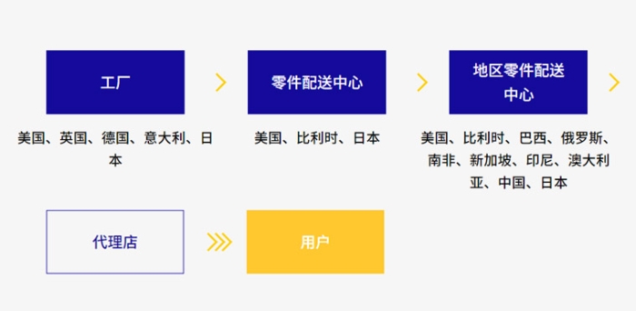 2通过遍布全国的代理店网络,高效、快速、便捷地为用户提供所需的纯正零件。